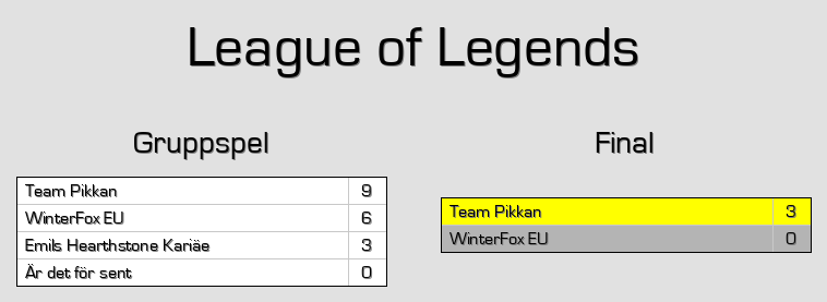 - Det lag som kommer från winner brackets kommer att börja med 1 poäng.