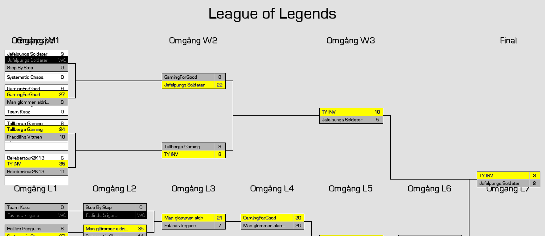 | Tallberga Gaming | 5/5 | Rad 7 Plats 10 | ||