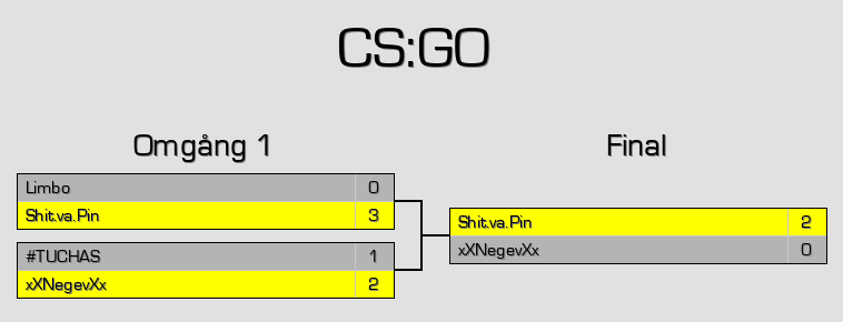 | Shit.va.Pin | 5/5 | Rad 8 Plats 21 | 1:a Vinnare av CS:GO NitroXy17 | |